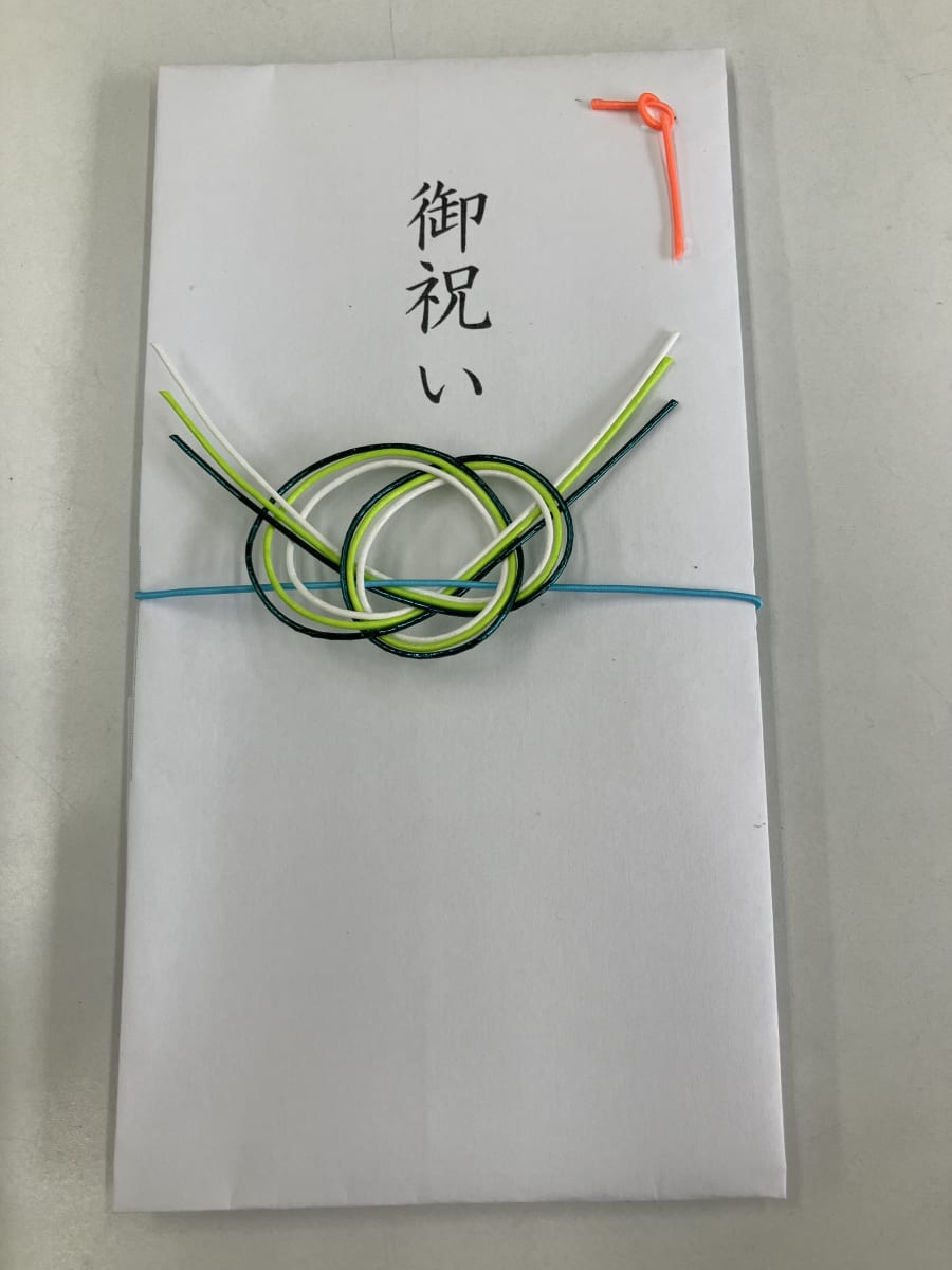 家族の誕生日お祝い用に、封筒をWordで作り、水引きは、あわじ結びで、頑張りました。