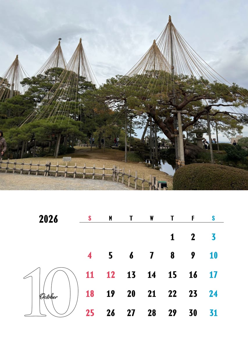 | 作品(写真)紹介 | 秋のやわらかな光に包まれた兼六園。雪吊りの糸が空へそっと伸び、人々の歩みも景色に溶け込んでいく。季節の移ろいと庭のぬくもりが静かに寄り添う、やさしい時間を切り取った一枚です。 |