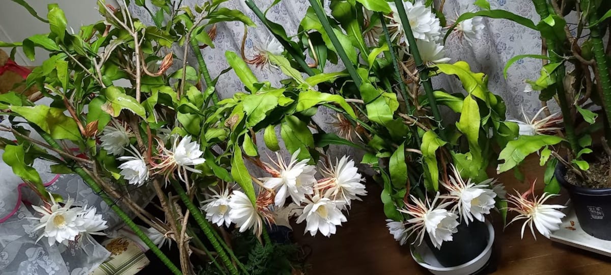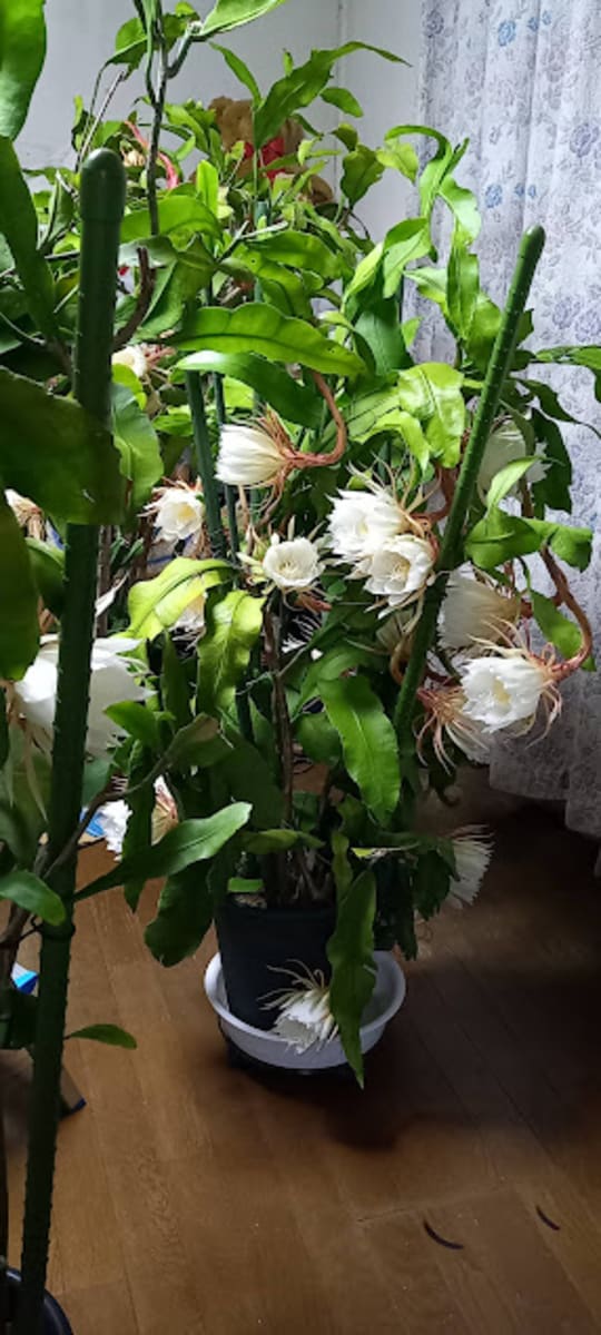 月下美人と丹下丸の開花をバックにしました