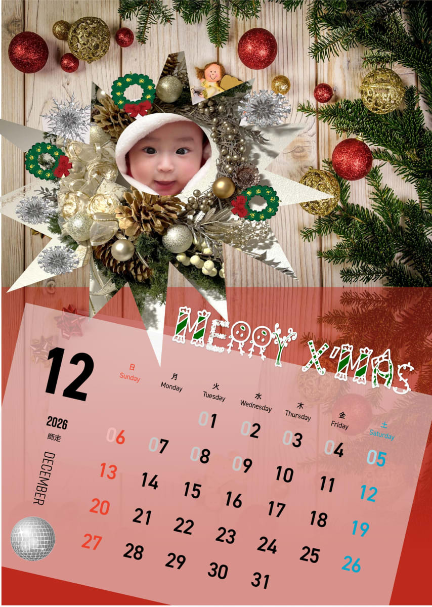 今年の12月は、私が作ったクリスマスリースの中から、孫の笑顔が飛び出しています。賑やかなクリスマスを表現してみました。ハッピーな年末になりますように!