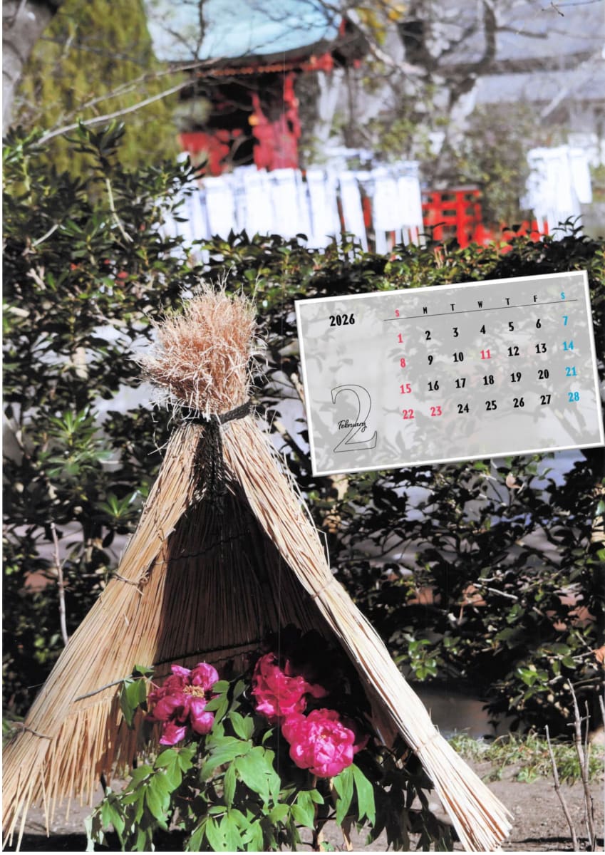 鶴岡八幡宮の藁囲いの牡丹と、向こうに見えるのは旗上弁天社です。春が待ち遠しいです。