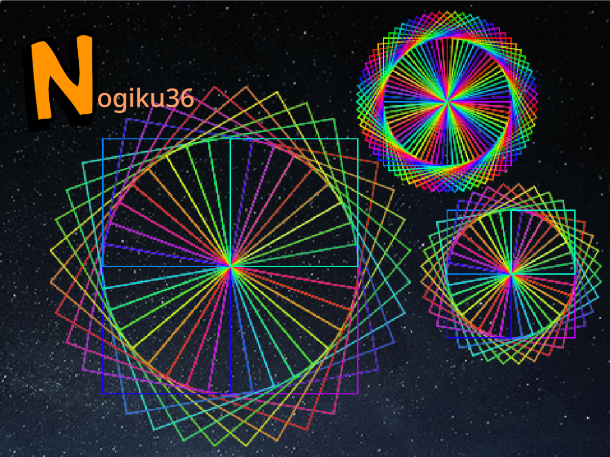 | 作品(写真)紹介 | 月に一度のおとなのためのScratch講座でスピログラフアートに挑戦しました。描く形や角度、速さで表現が変わるのでいろいろ試してみました。 Scratchサイトはこちら