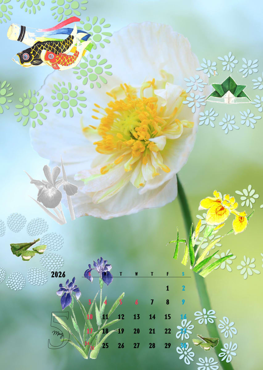 絵手紙に書かれた鯉のぼりや兜を切り取るのに苦労した作品です。