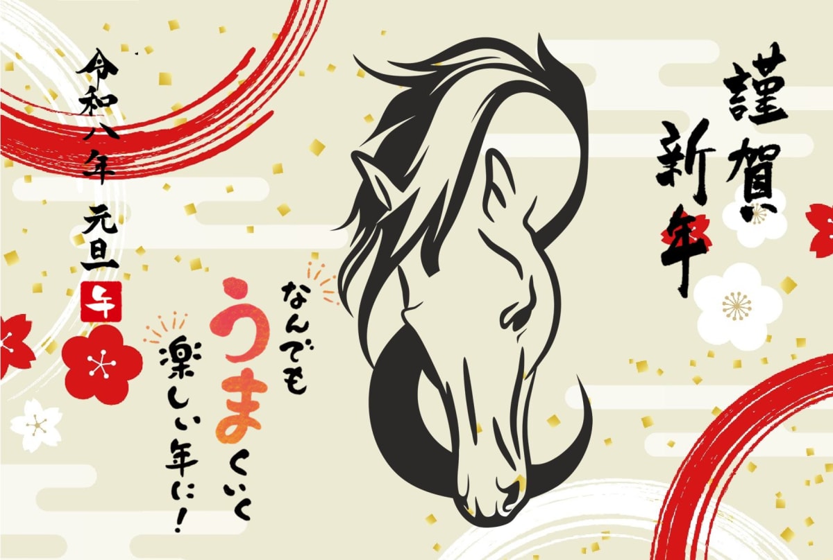年賀状は、横型のレイアウトにいつもチャレンジしています。印刷した時にきれいな色が出るように、背景の組み合わせを工夫しました。
